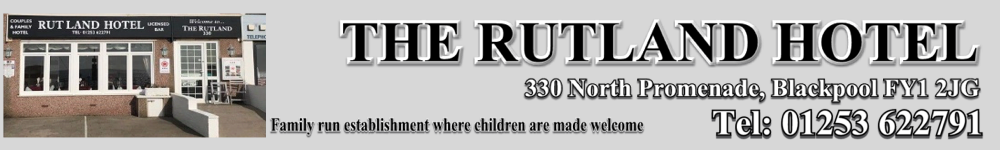 The Rutland is a Blackpool family hotel, situated on the North Promenade overlooking the Irish Sea. The Rutland has recently had a full refurbishment. All rooms have an en-suite bathroom, Television, Tea & Coffee making facilities, Hairdryer, Iron, Central heating and Free WI-FI. Sea-view rooms & cots for small children are available on request.
